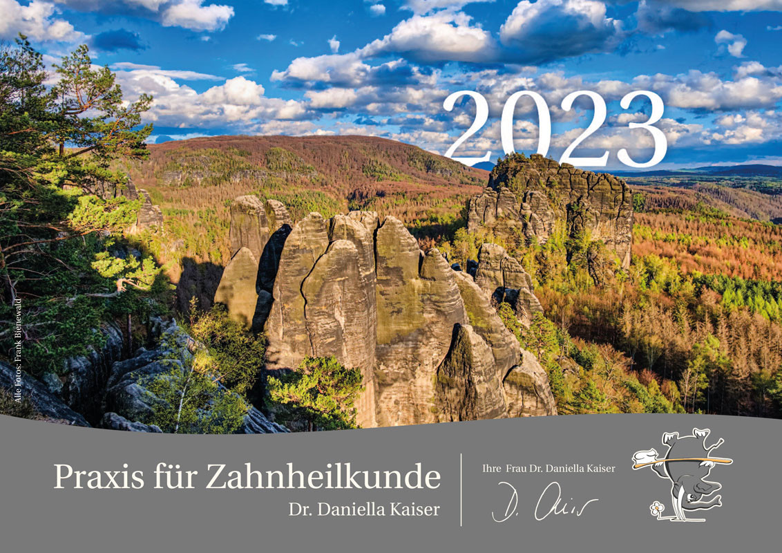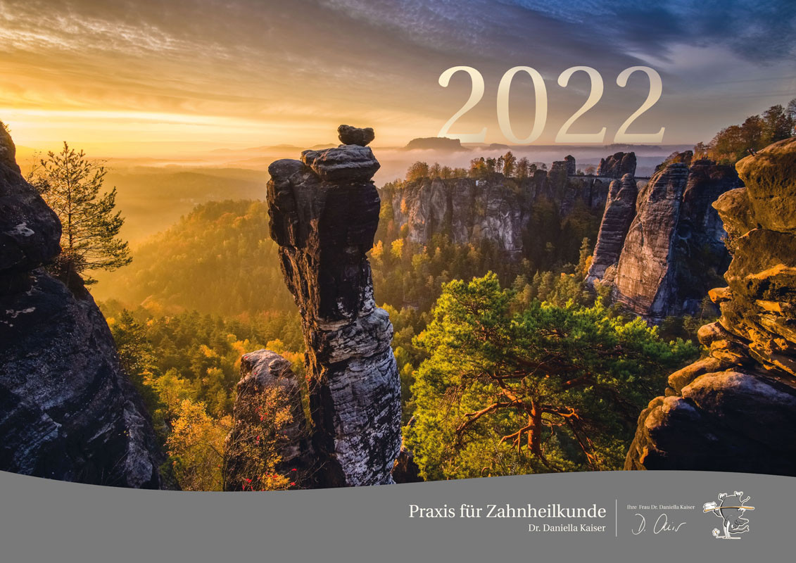 Die sehr fotogene Sächsische Schweiz drängt sich geradezu auf für einen weiteren Geschenk-Kalender für die Patienten und Geschäftspartner der Praxis für Zahnheilkunde.